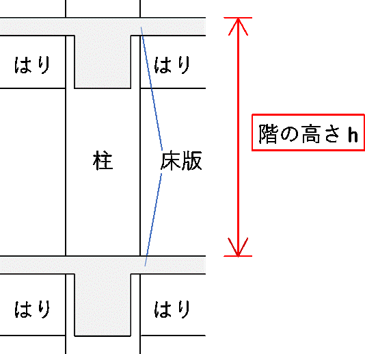 - 階の高さをこのように扱うのは、はりの構造心間の距離を階の高さとした場合では、他の階に比べてせいが非常に大きな基礎ばりと一般階のはり間の階の高さを過大評価(つまり、層間変形角を過小評価)してしまうためです。