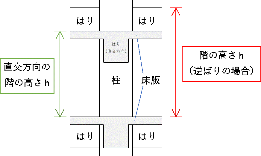 - 階の高さは、原則として、層間変形角を計算する鉛直部材の当該階の床版上面位置から上階の床版上面位置までの鉛直距離を用います。
