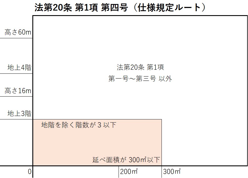 - 法第20条 第1項 第四号 に該当する建築物では、仕様規定への適合の確認が必要となります。