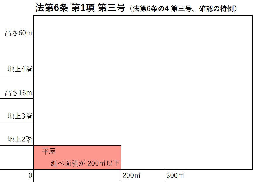 - 令第6条の4 第1項 第三号に、建築士の設計によるものは審査省略が適用できる、確認の特例(いわゆる『新3号特例』『旧4号特例』)の規定があります。