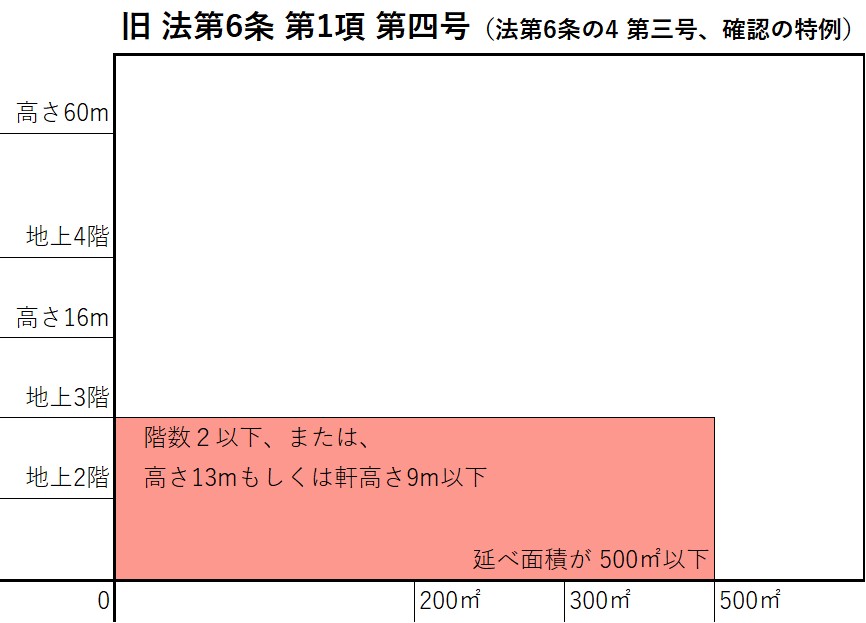 - ちなみに、『旧4号特例』の対象とされていた建築物の規模は、次のとおりです。
